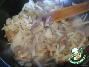 Грибы режем и обжариваем вместе с луком порезанным.Остужаем.