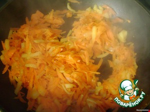 Морковь трём на крупной тёрке и обжариваем с порезанным луком.Остужаем.