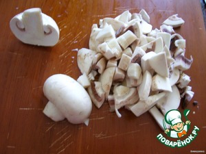 • Нарезаем грибы кубиками и отправляем к луку.
