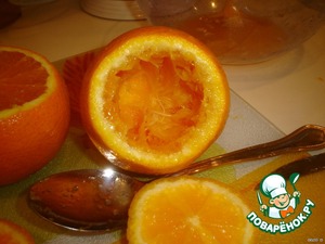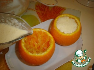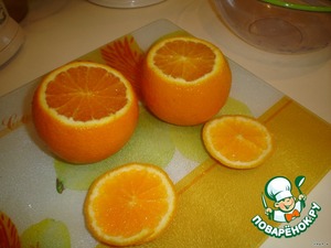 С 4 апельсинов срезать верхушки(порция на 4 персоны).
