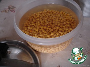Нут перебрать, промыть, и замочить на ночь в холодной воде (я замачивала на 4 часа ).