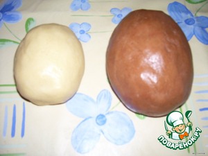 Маргарин растопить,добавить сахар,жидкий мед,ванилин,желток и крахмал,все хорошо перемешать.отложить 1,5 ст.л. этой массы в другую посуду.В оставшуюся массу добавить какао,перемешать.в обе массы добавить муки столько,чтобы получилось очень крутое тесто(если тесто будет недостаточно крутое,то при выпекании стечет вниз по груше!!!проверено!). Накрыть тесто салфеткой и оставить мин на 30.