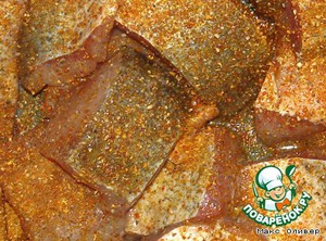 Пересыпаем рыбу специями и солим.