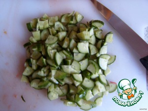 Отделяем мясо курочки от костей и режем на не большие кубики.