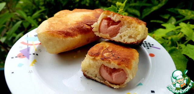 2. Тесто аккуратно разделить на одинаковые кусочки и раскатать. В каждый пласт теста завернуть сосиску. Оставить примерно на 15 -20 мин для расстойки.