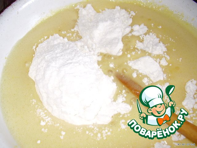 крем:1) смешать 1,5 стакана молока, 3 яйца и 4,5 ст. ложки муки