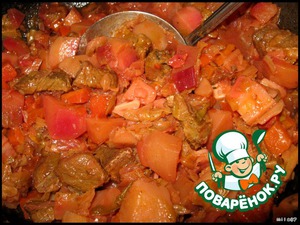 4. Редька + перец + чеснок, готовим до готовности мяса и овощей...