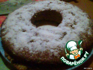 Перед тем как вынуть пирог из формы, охладите его при комнатной температуре в течение 10 минут. Пирог выложите на блюдо, посыпьте сахарной пудрой.