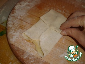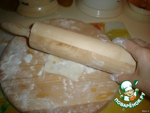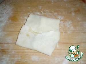 Посыпем мукой и опять раскатаем в квадрат на 15см