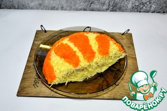Это один из моих любимых салатов. Почему так называется? А потому, что моя подруга попробовала и сказала, что вроде как "каприз", а вроде и нет. Готовится просто. Вкус с ноткой копчeности. На мероприятия обязательно готовлю этот салат. Он пользуется большой популярностью у гостей. Даже крошечки никогда не остаeтся в салатниках. Извините за фото, сразу не сфотографировала, вспомнила, когда уже первую салатницу опустошили и принялись за вторую. Утащила и очень быстро сфоткала.