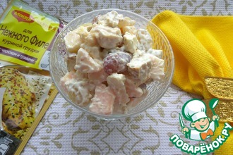 Копчёную курицу можно приготовить самим. В данном салате я так и сделала, потому что не успела купить готовую. Просто отварите курицу с добавлением 3-4 ложек "Ольхового дыма" Получается даже лучше.
