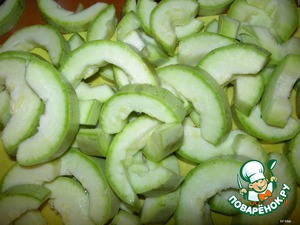 Нарезаем полукольцами и опускаем в кипящую подсоленную воду на 3 минуты, самое главное не передержать.