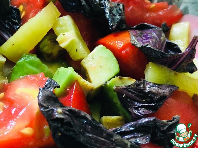 Мой любимый салат. Всe просто: помидоры, авокадо, перец, базилик и оливковое масло