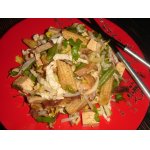 Нарезанный кубиками репчатый лук добавить в тушеные баклажаны и тут же вынуть.