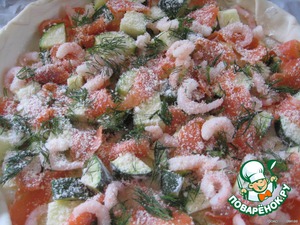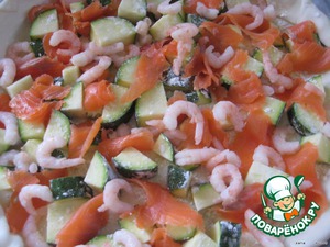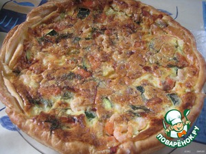 Рецепт «Киш с семгой, кабачками и креветками»: