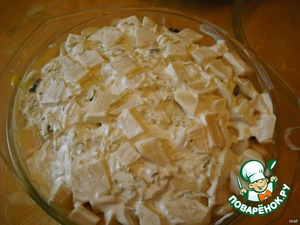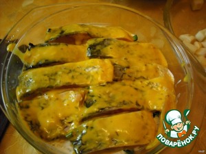 На дно формы для запекания кладем парочку кусочков сала, а можно и без него просто смазать майонезом, например.