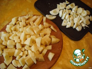 - Картофель (можно отварной, быстрее приготовится блюдо) — 6 шт