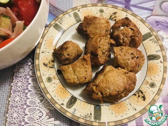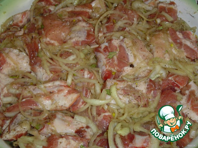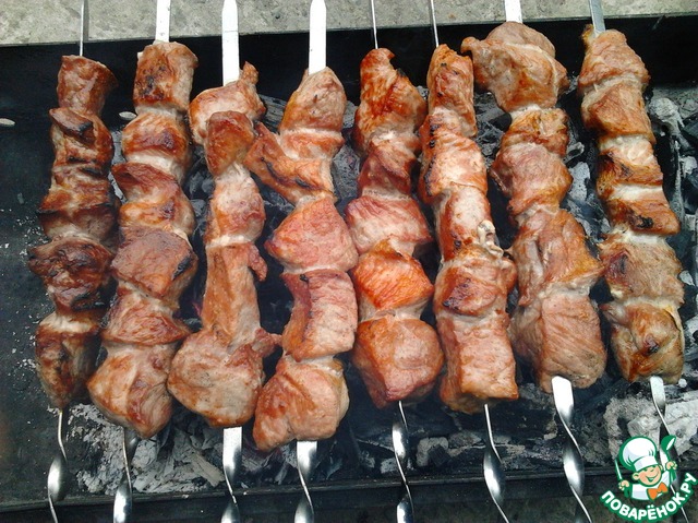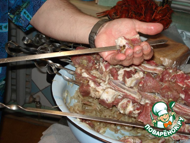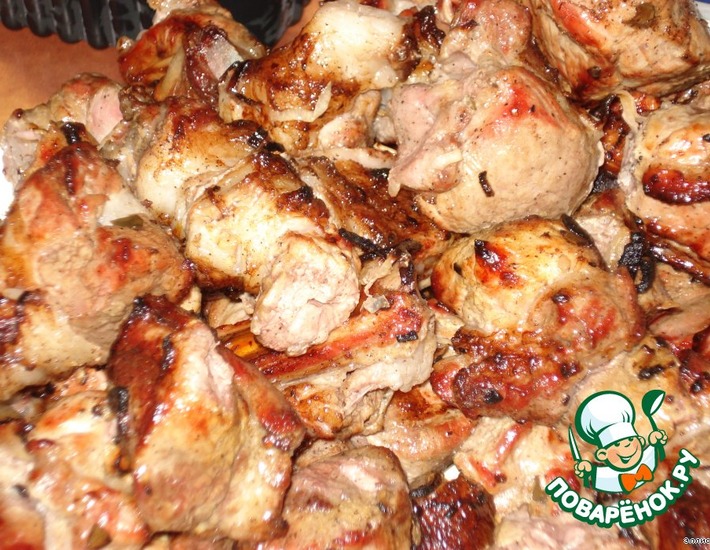 Рецепт получен отцом во время поездки на Кавказ еще в 70-е. Готовили разный и с минералкой, томатным соком, майонезом, но этот вкуснее. Мясо мягкое, сочное, ароматное.