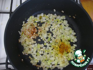 Лук и чеснок порежем произвольно, спассеруем на сливочном масле.