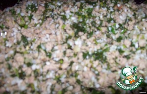Добавляем рис сырой, и убираем сковороду с плиты. Фарш готов. На полкило фарша, приблиз-но полстакана риса