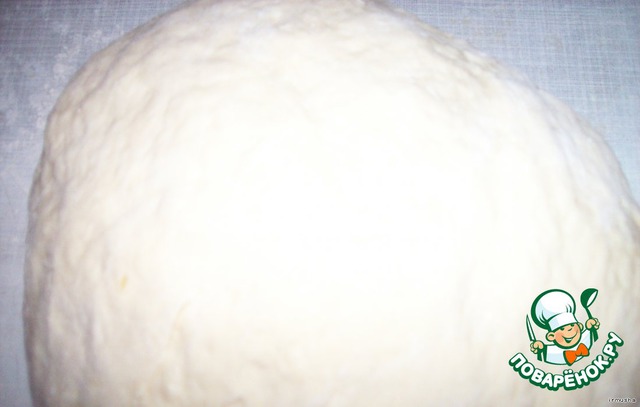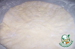 Перемешать, добавить муки. Постепенно всыпаем по 1 стакану, приблизительно в тесто на замеску ушло 6 стаканов. Плюс на раскатку