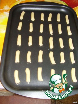 Для крема взбейте сметану с сахарной пудрой. Окуните каждый "пальчик" в крем и выложите в любой форме. я использовала разъемную, затем поставить желательно в холодильник, лучше на ночь. осторожно затем снять форму