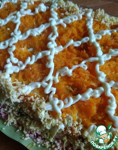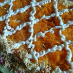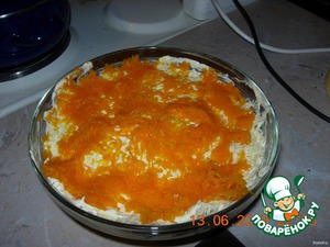 5-й слой- отварная морковь, натертая на мелкой терке;
