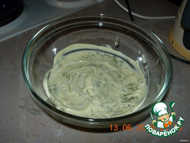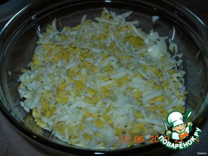 2-й- слой отварные мелко порезанные яйца ( я натираю на крупной терке), майонез;