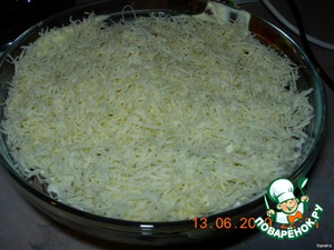 4-й слой- сыр натертый на мелкой терке, майонез