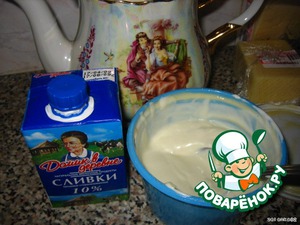 Смешиваем:сметану, сливки, майонез и выдавливаем зубчик чеснока