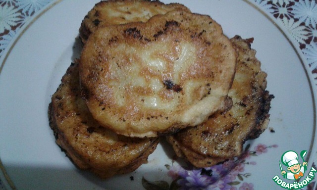 Теперь делаем густой кляр из 1 яйца, муки, соли и воды. Обмакиваем наши котлетки в кляре и отправляем на сковороду с разогретым маслом.