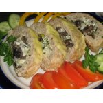 Рулет должен замерзнуть до такой степени, что бы его можно было порезать и он не развалился. Нарезаем наш рулет на кусочки (я отрезал от него необходимое количество кусочков, а остальное опять убрала в морозилку). Да, не надо размораживать котлетки, только что бы они немного оттаяли, пока будете готовить кляр.