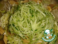 Корневой сельдерей очистить, порезать тонкой соломкой. Лучше на терке для корейских салатов.