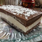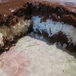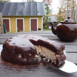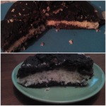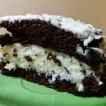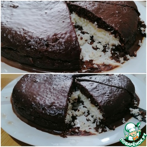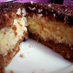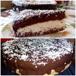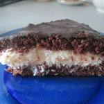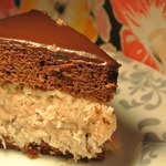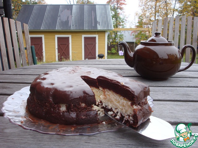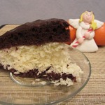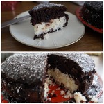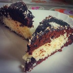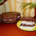 Шоколадный тортик с кокосовой начинкой. Бисквит очень нежный, очень шоколадный, почти без муки. Начинка похожа на «Баунти», но вкуснее, да и состоит полностью из натуральных продуктов (кто, как и я, приходил в ужас, прочитав состав шоколадного батончика, меня поймет). Быстро готовится, очень вкусно и недорого, так что вполне можно приготовить без всякого повода, но и на праздничный стол поставить не стыдно