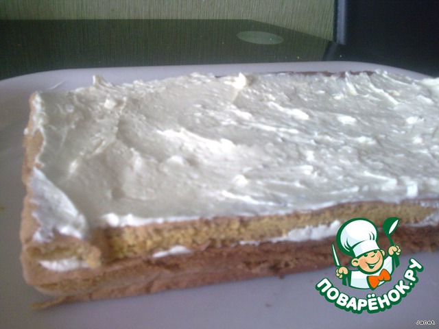 Бисквиты укладываем один на другой, смазывая кремом. -