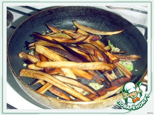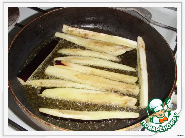Разогреть масло в глубокой сковороде и жарить баклажаны, пока не потемнеют. Снять с огня.