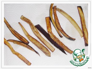 Ломтики баклажанов выложить на бумажное полотенце, чтобы удалить жир.