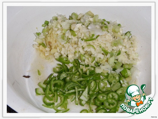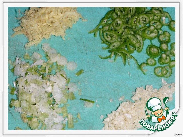 - Перец красный жгучий (нарезать тонкими кольцами) — 1 шт