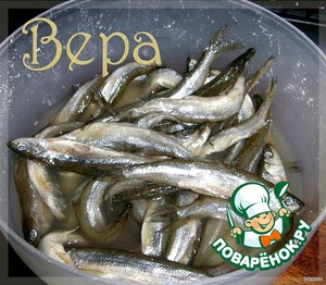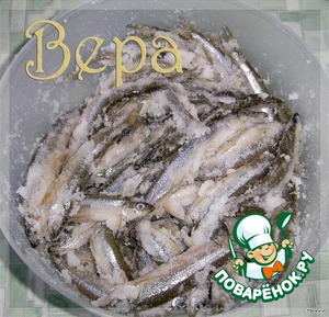 Пересыпаем ее солью и оставляем на день (в холодильник не убираем). Пересыпаем ее солью, каждая рыбка должна быть покрыта. -
