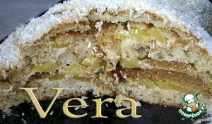 Пропитать бисквит соком от фруктов, смазать кремом, выложить слой персиков. -
