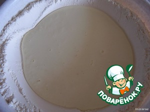 Теперь из кусочка теста лепим лепешку, кладем остывшую начинку.