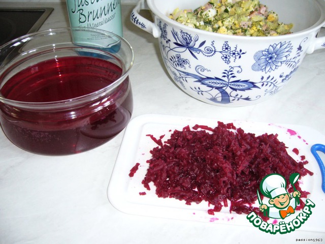 Когда свекла станет мягкой, снять ее с огня, дать остыть. Жидкость, в которой варился овощ, ни в коем случае не выливать, даже если вам покажется, что она абсолютно неприглядного вида. Это и есть основа для свекольника.