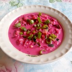 В такую жару (которая стоит сейчас у нас) ничего, кроме чего-то лeгкого и холодного, не хочется. Я уже два дня только этот суп и ем, за уши не оттащишь, прекрасная альтернатива окрошке, попробуйте один раз, и уверенна, приготовите ещe, и не один раз... Источник рецепта SweetLady - Юля, жж.