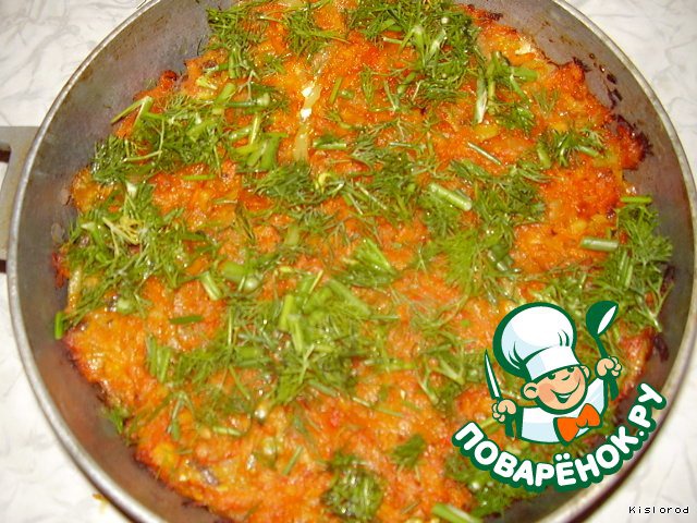 И поставить форму в духовку на 200 градусов на 10 минут, достать, посыпать зеленью.