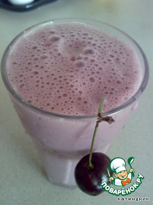 3.Доливаем молоко и взбиваем еще раз.4.Подаем со льдом в большом стакане украсив черешенкой.