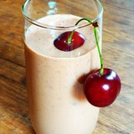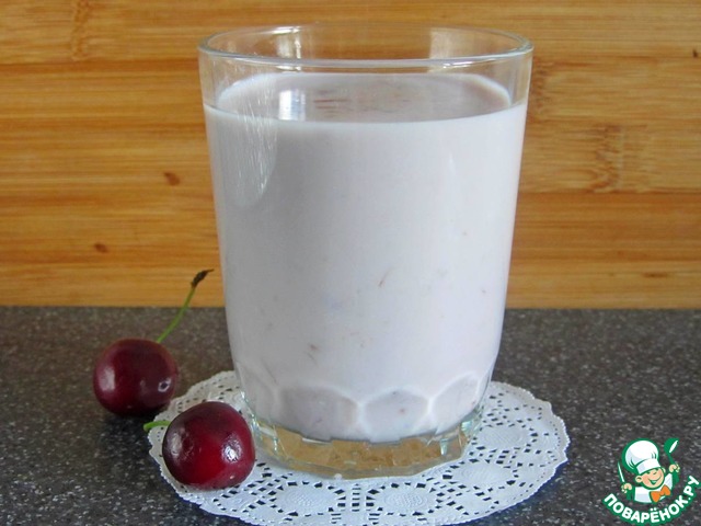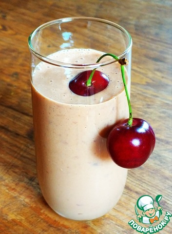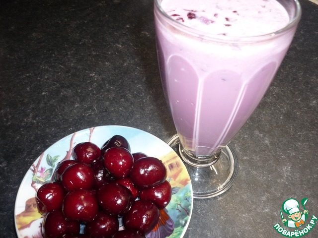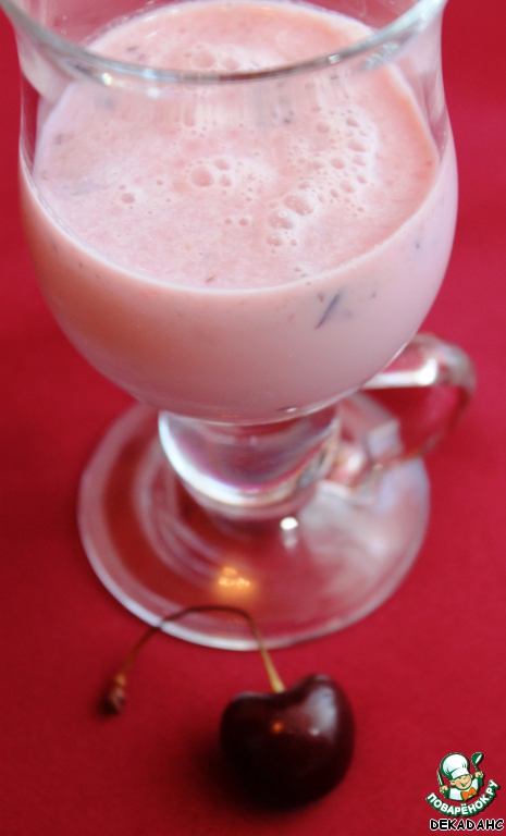 3.Доливаем молоко и взбиваем еще раз.4.Подаем со льдом в большом стакане украсив черешенкой.