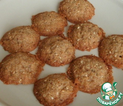 Наступил Петровский пост, так что этот рецепт актуален. Иногда так хочется чего-нибудь к чаю. Это печенье - мой чистый экспромт, не судите строго. Я делала на пробу всего немного, вышло 8 штучек. Оно приятное на вкус, хрустящее и полезное. Без муки и сахара. Может, вам пригодится.