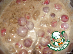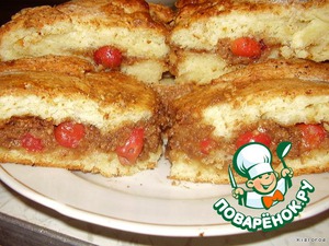 начинка: в отдельной емкости смешать марципановую массу, корицу, цедру лимона, сливки, черевишню без косточек;