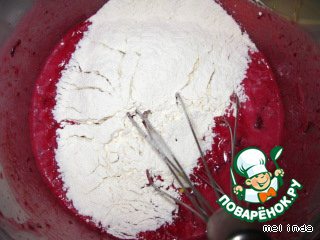 перемешать,добавить просеянную муку(если обычная мука,то ее нужно смешать с содой и разрыхлителем,а затем просеять)