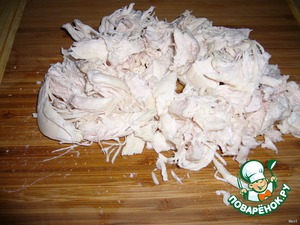 порезать куриные грудки (у меня их получилось только в ручную разделить :-))